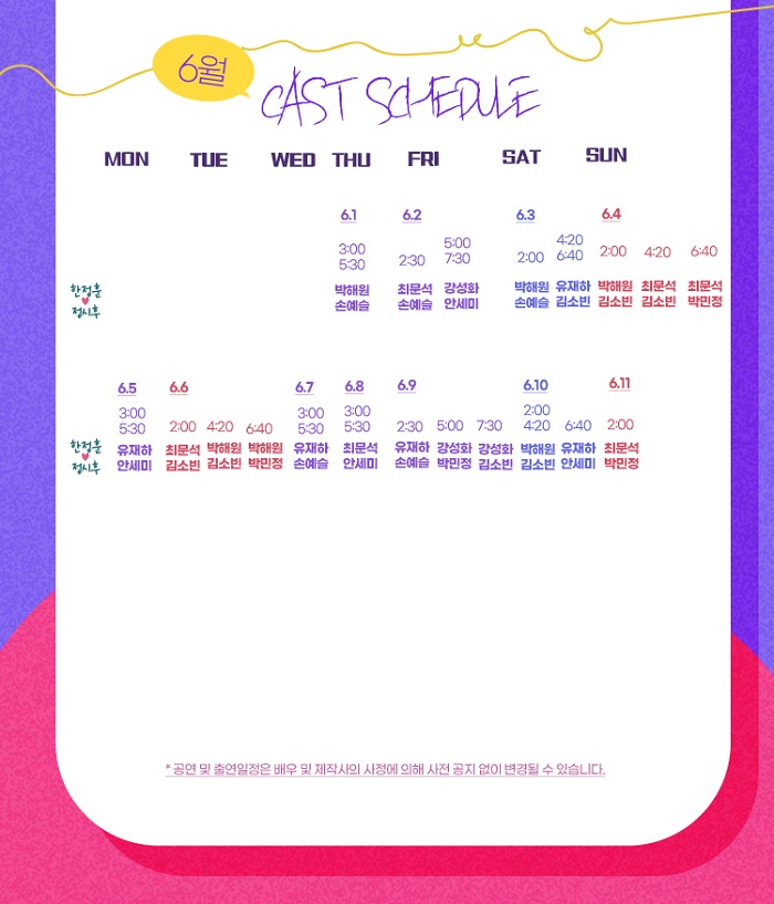 6월 11일(일) 14:00 최문석 -> 박해원 배우로 변경되었습니다.