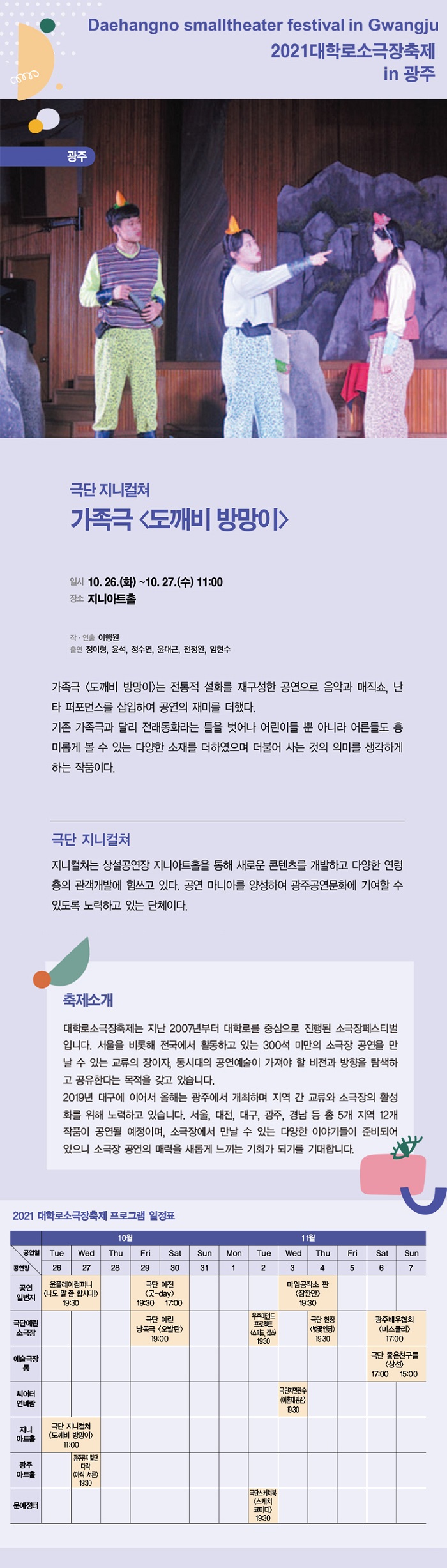 2021 대학로소극장축제 in 광주 10월 26일(화) ~ 11월 7일(일)