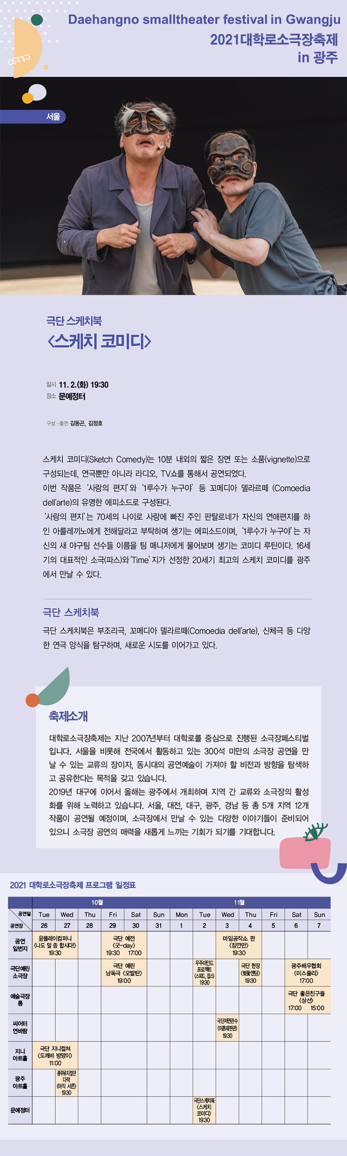 2021 대학로소극장축제 in 광주 10월 26일(화) ~ 11월 7일(일)