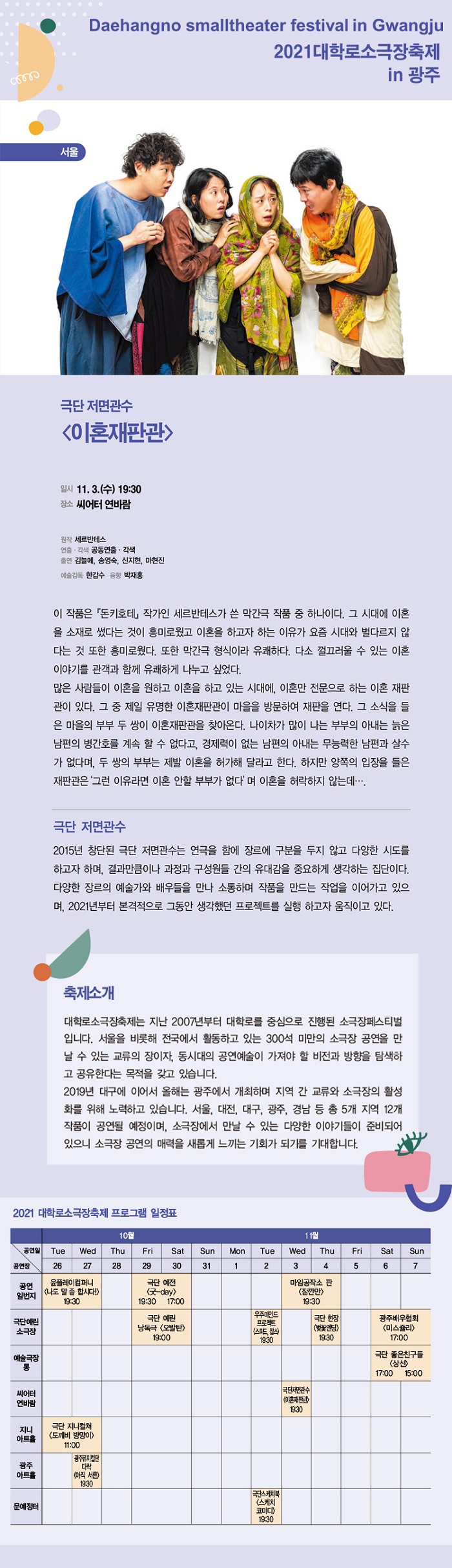 2021 대학로소극장축제 in 광주 10월 26일(화) ~ 11월 7일(일)