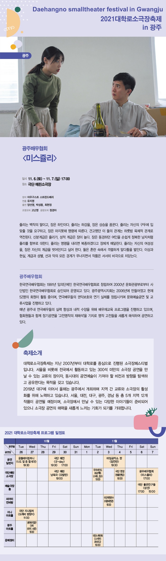 2021 대학로소극장축제 in 광주 10월 26일(화) ~ 11월 7일(일)