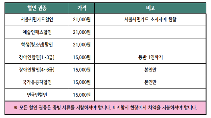 | 할인정보 | * 하단 참조 / 좋은공연안내센터 현장티켓 |