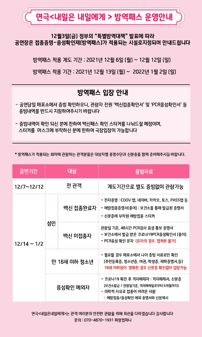 금 11:30 / 토일 15:30 / 월화수목 공연 없음