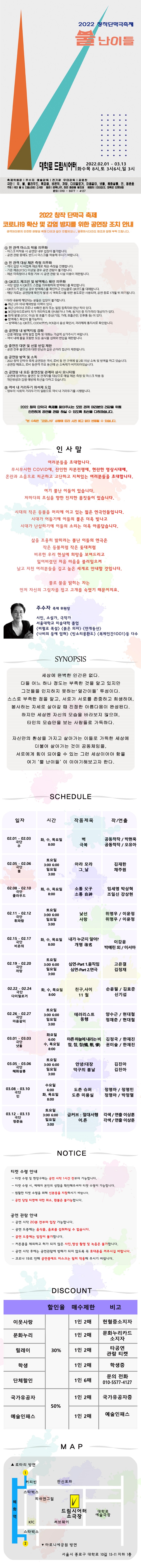 | 공연일자 | 2022-02-01(화) ~ 2022-03-13(일) | ||||||||||||||||||||||||||||||||||||||||||||||||||||||