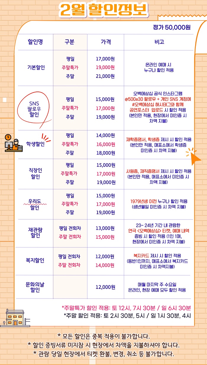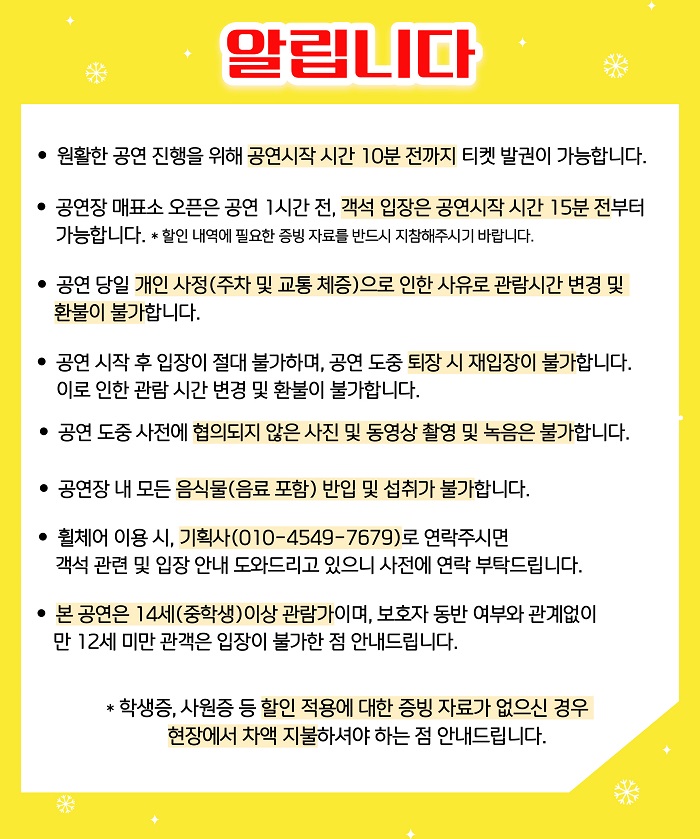 ☞ 좋은공연안내센터 현장할인은 잔여석에 한하여