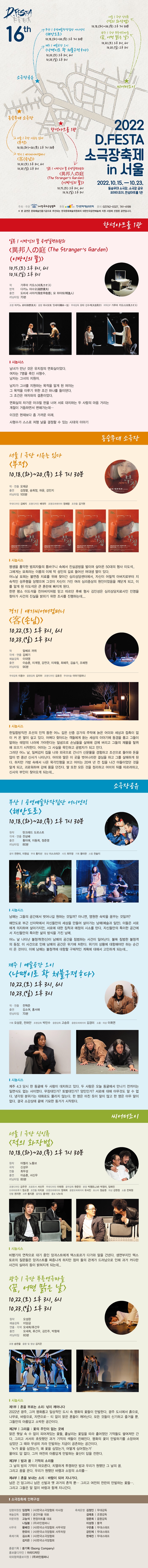 | 제작 | (사)한국소극장협회 | ||||||||||||||||||||||||||||||||||||||||||||||||||||||
