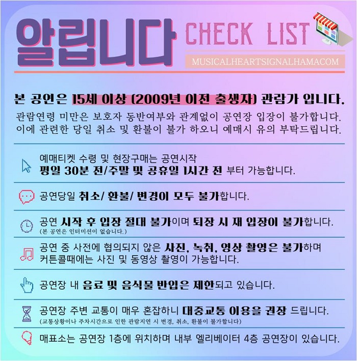 * 하트시그널할인은 대학로티켓닷컴 이용 관객 모두 할인 적용이 가능합니다.