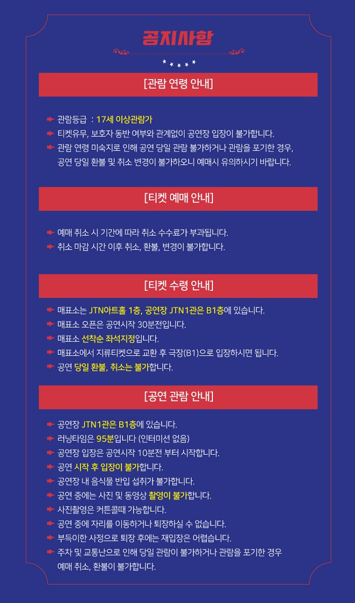 | 공연장소 | JTN 아트홀 1관 | ||||||||||||||||||||||||||||||||||||||||||||||||||||||