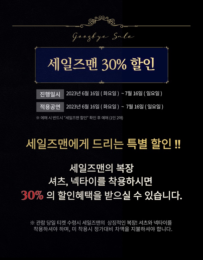 | 공연일자 | 2023-06-16(금) ~ 2023-07-16(일) | ||||||||||||||||||||||||||||||||||||||||||||||||||||||