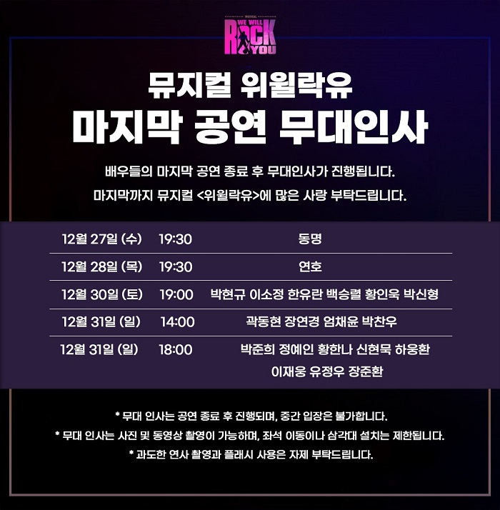 | 공연시간 | 화수목금 19:30 / 토 15:00 19:00 / 일 14:00 18:00 (월 공연 없음) | ||||||||||||||||||||||||||||||||||||||||||||||||||||||