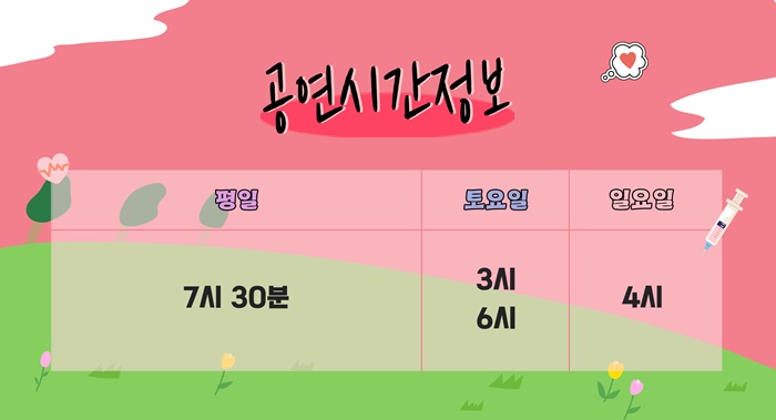 월화수목금 19:30 / 토 15:00 18:00 / 일 16:00