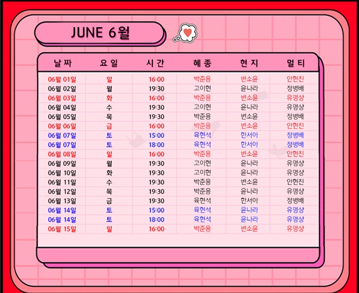 | 출연자 | 박준용, 육현석, 고이현, 변소윤, 한서아, 윤나라, 안현진, 정병배, 유명상 | ||||||||||||||||||||||||||||||||||||||||||||||||||||||