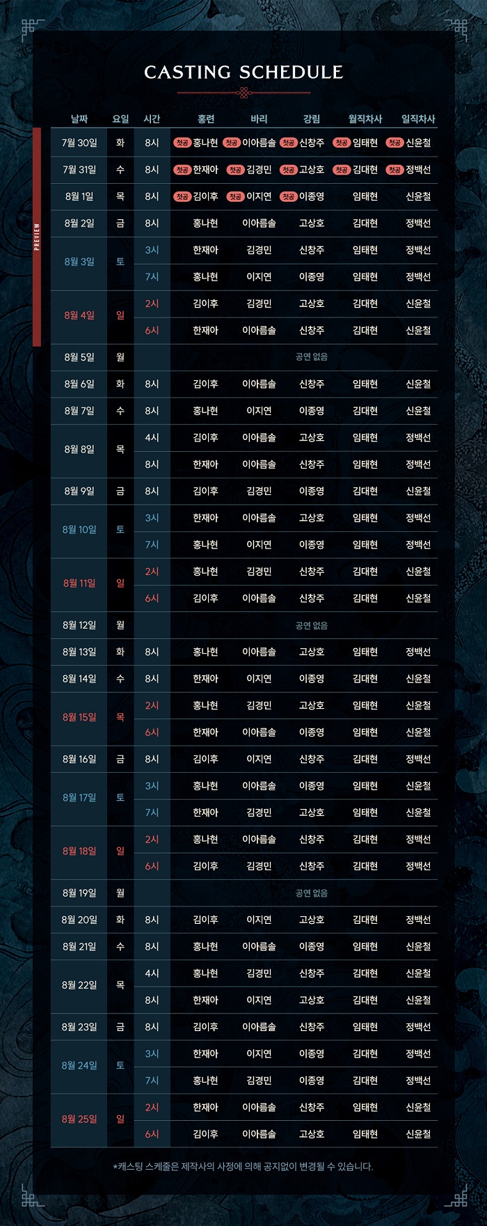 | 공연장르 | 뮤지컬(창작), [추가분류] 초연 | ||||||||||||||||||||||||||||||||||||||||||||||||||||||