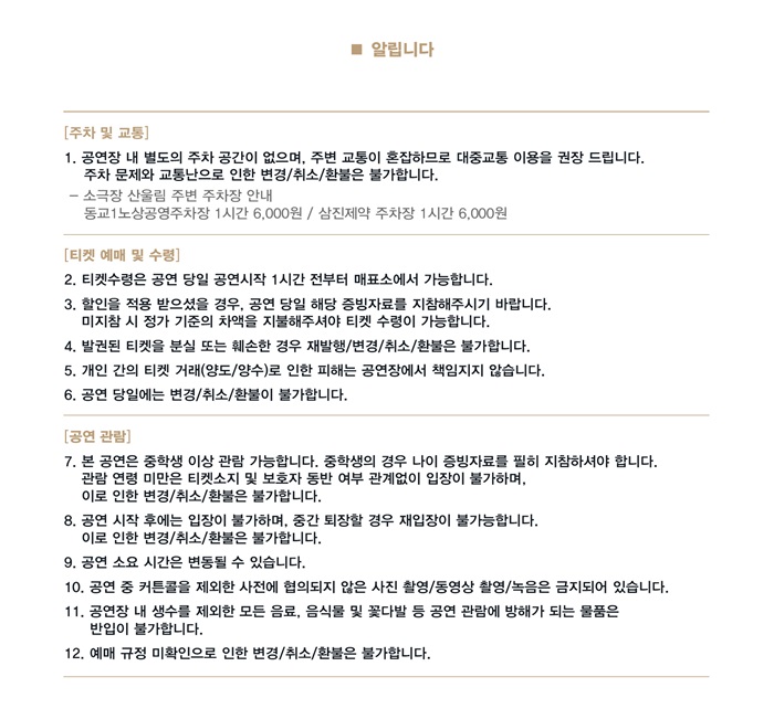 | 공연문의 | 02-334-5915 | ||||||||||||||||||||||||||||||||||||||||||||||||||||||