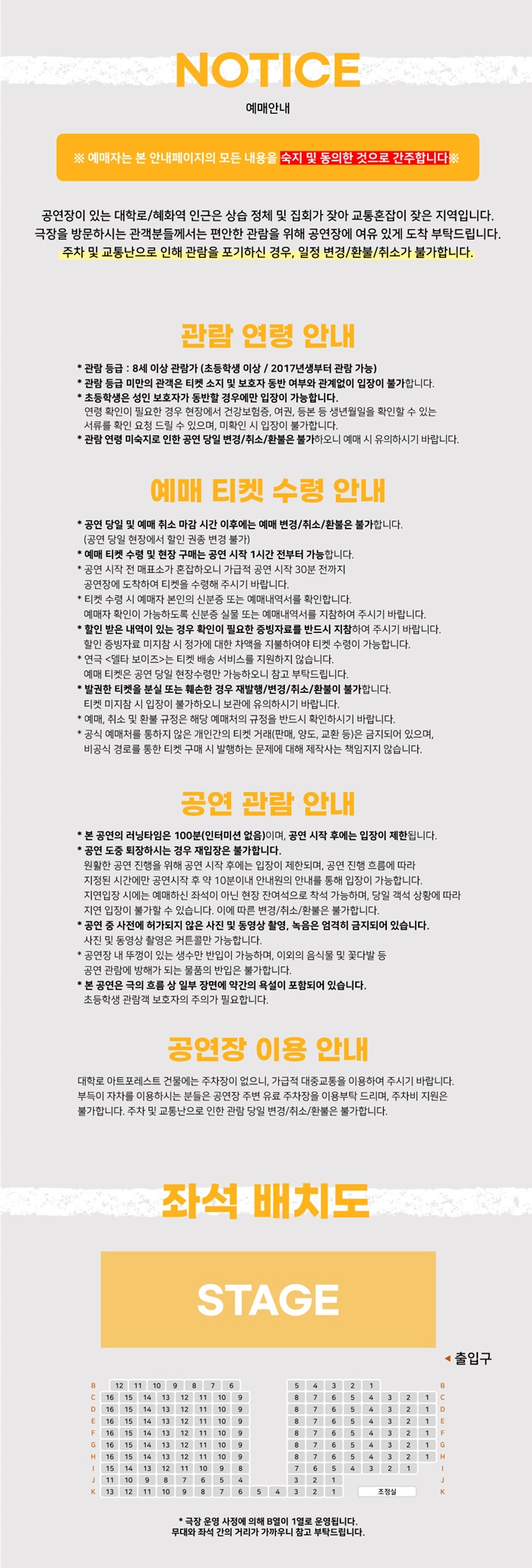 • 티켓박스(매표소) 오픈 시간은 공연시작 1시간 전입니다.