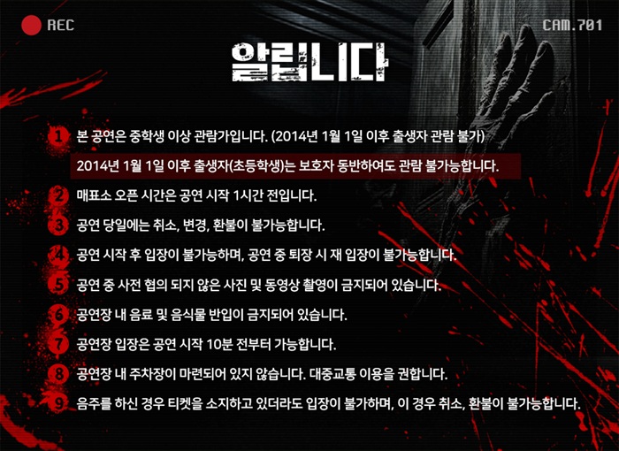 | 공연장르 | 연극(창작), 연극(스릴러), [추가분류] 앵콜 | ||||||||||||||||||||||||||||||||||||||||||||||||||||||