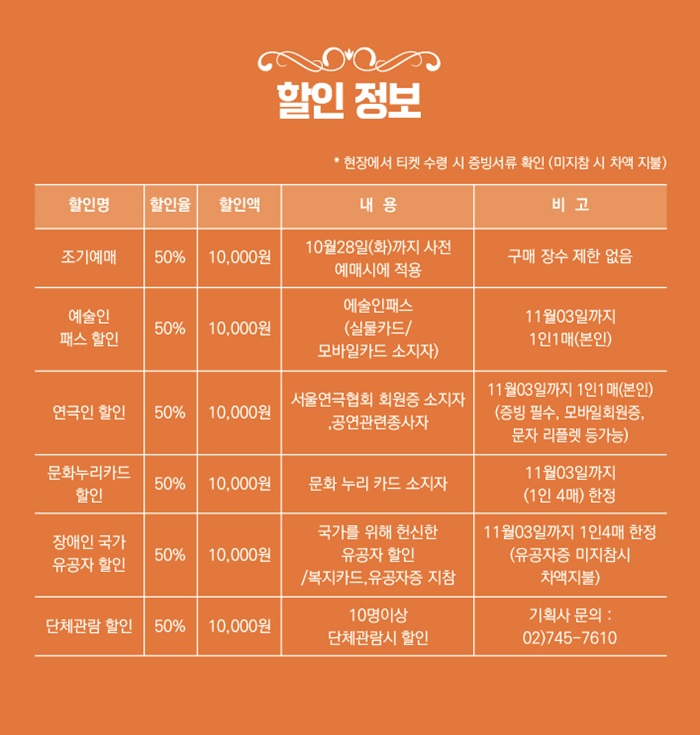 | 할인정보 | * 하단참조 / 좋은공연안내센터 현장할인 |