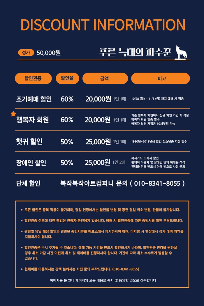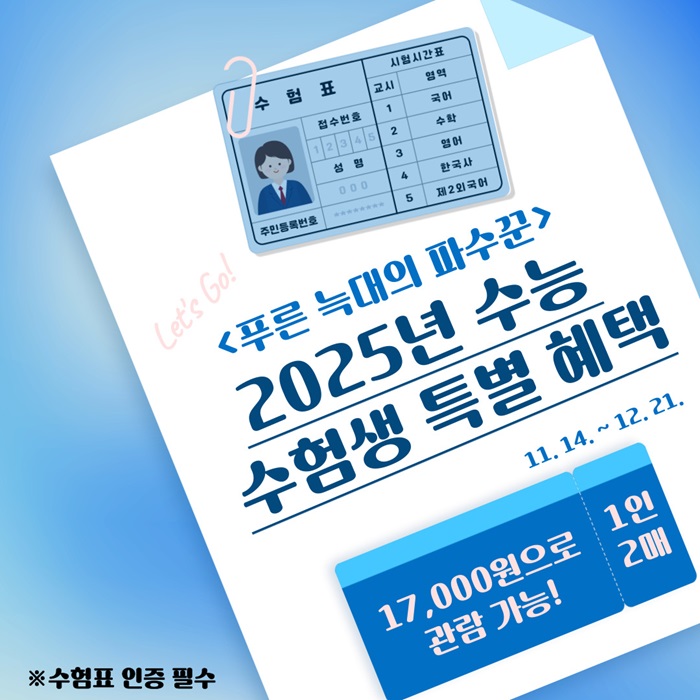 * 수험생 할인 : 17,000원 (1인 2매까지 구매 가능, 수험표 지참 필수)