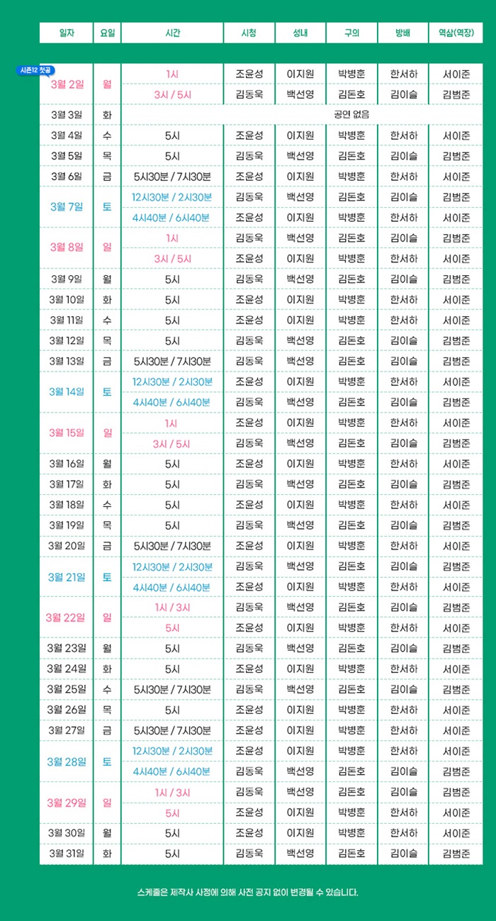 토 12:30 14:30 16:40 18:40 / 일 13:00 15:00 17:00