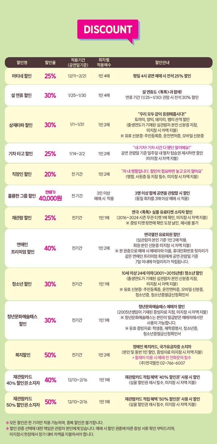 할인정보 * 하단참조 / 좋은공연안내센터 현장할인