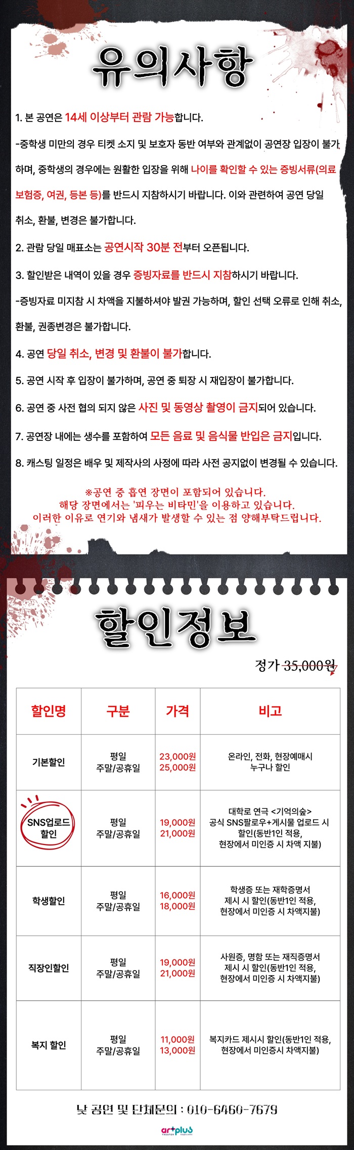 | 공연장르 | 연극(호러), [추가분류] 오픈런 | ||||||||||||||||||||||||||||||||||||||||||||||||||||||