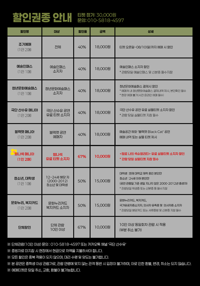 -청년문화예술패스, 단체할인은 극단 문의 바랍니다. (010-5818-4597)