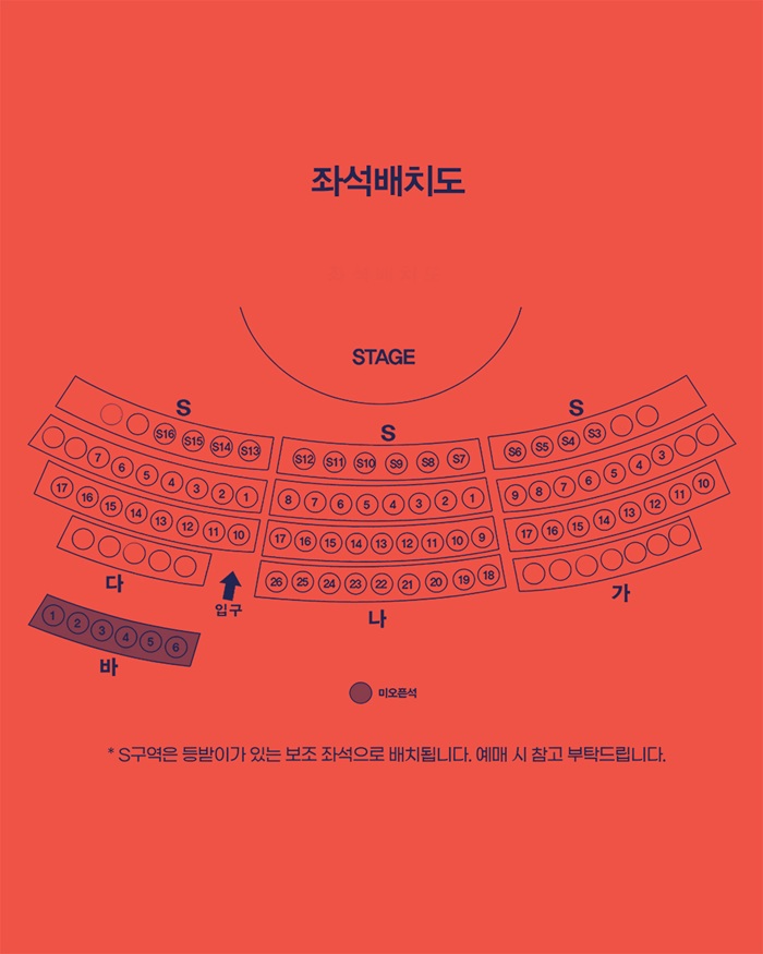 본 예매처에서는 비지정석으로 예매되며 관람 당일 공연장 앞 티켓박스(매표소)에서