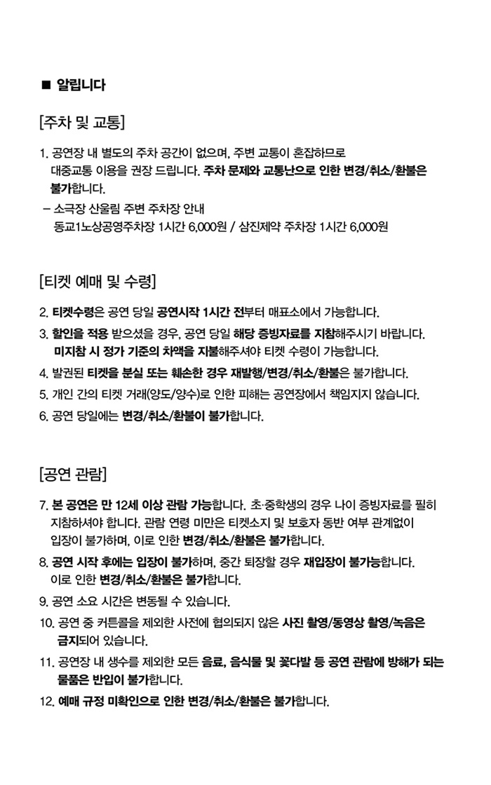 | 공연문의 | 02-334-5915 | ||||||||||||||||||||||||||||||||||||||||||||||||||||||