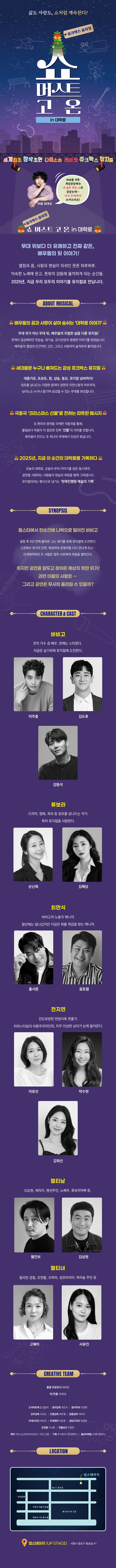 | 공연장르 | 뮤지컬(창작), [추가분류] 초연 | ||||||||||||||||||||||||||||||||||||||||||||||||||||||