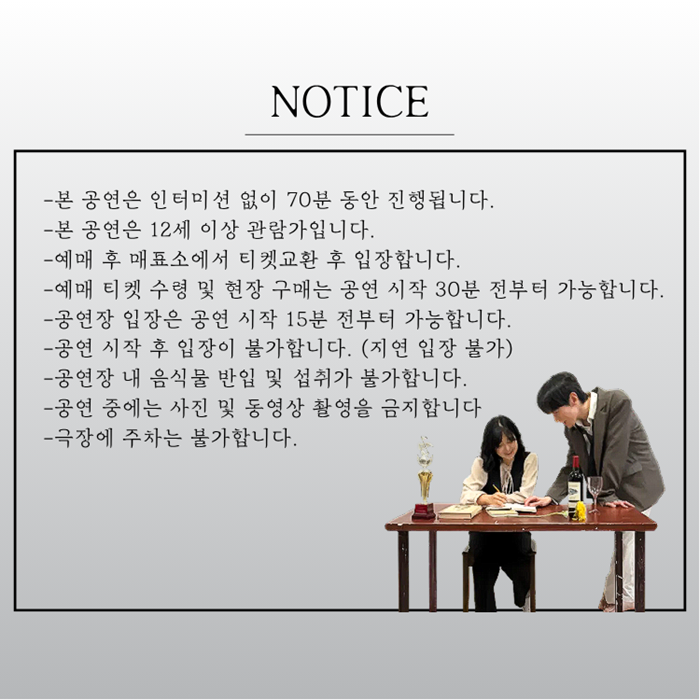 | 공연시간 | 월화수목금 19:30 / 토일 16:00 | ||||||||||||||||||||||||||||||||||||||||||||||||||||||