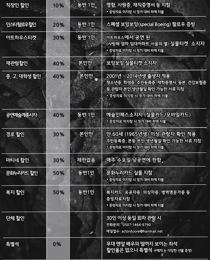 | 할인정보 | * 하단 참조 / 좋은공연안내센터 현장 할인 |