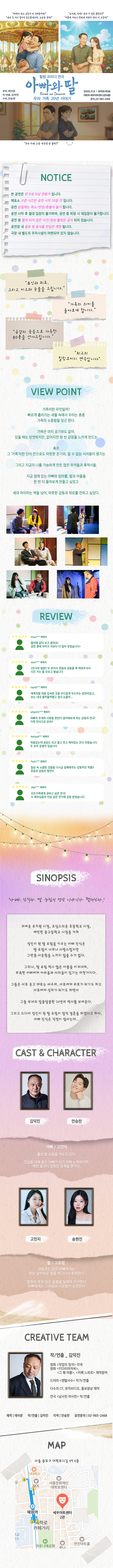 | 공연장르 | 연극(가족극), [테마] 아동, 가족 대상, [추가분류] 초연 | ||||||||||||||||||||||||||||||||||||||||||||||||||||||