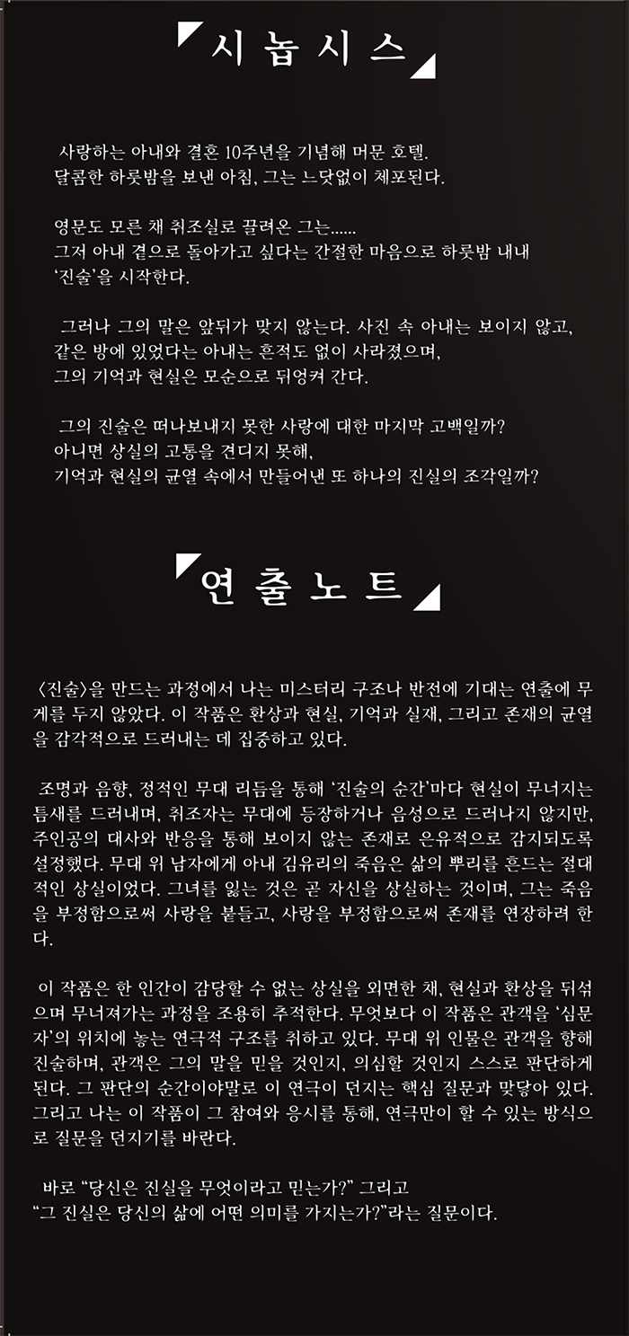 | 공연장르 | 연극(창작), 연극(드라마), [추가분류] 초연 | ||||||||||||||||||||||||||||||||||||||||||||||||||||||