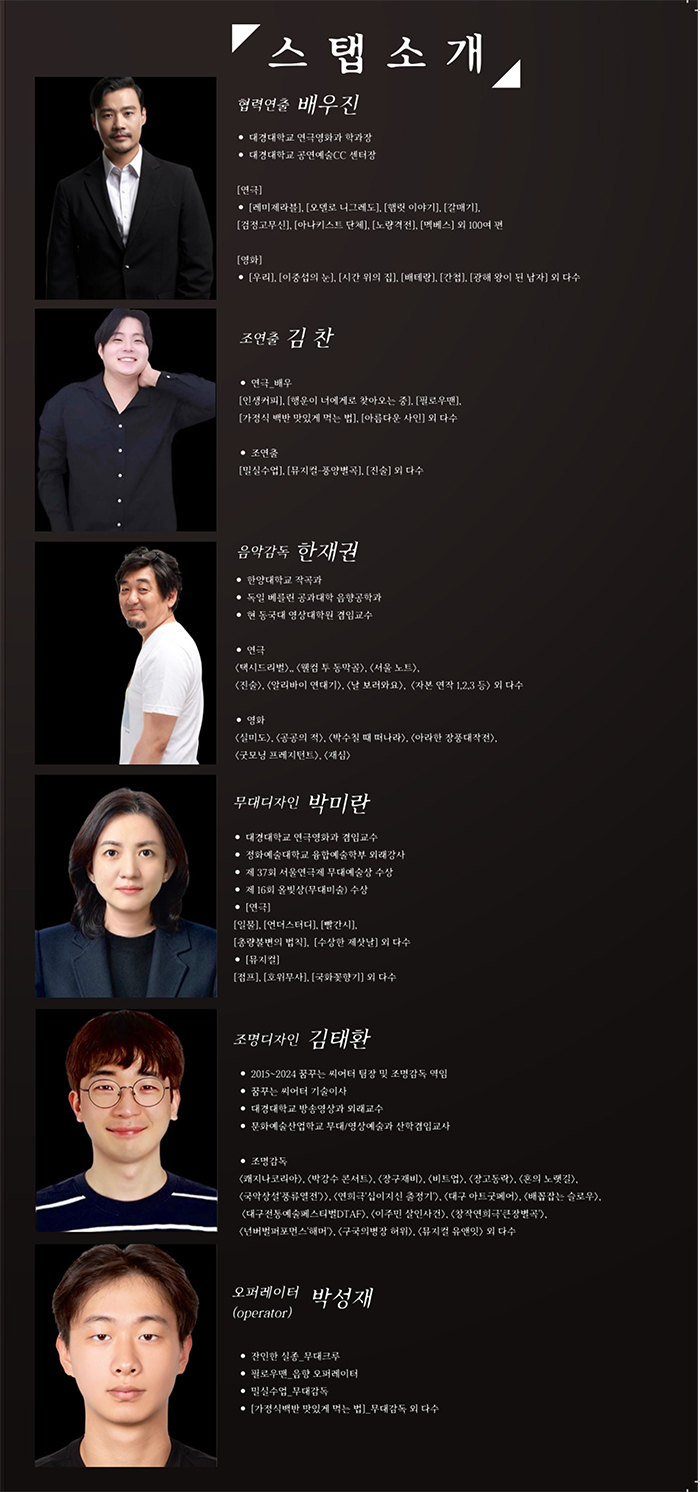 | 제작 | 극단 씨어터 판 | ||||||||||||||||||||||||||||||||||||||||||||||||||||||