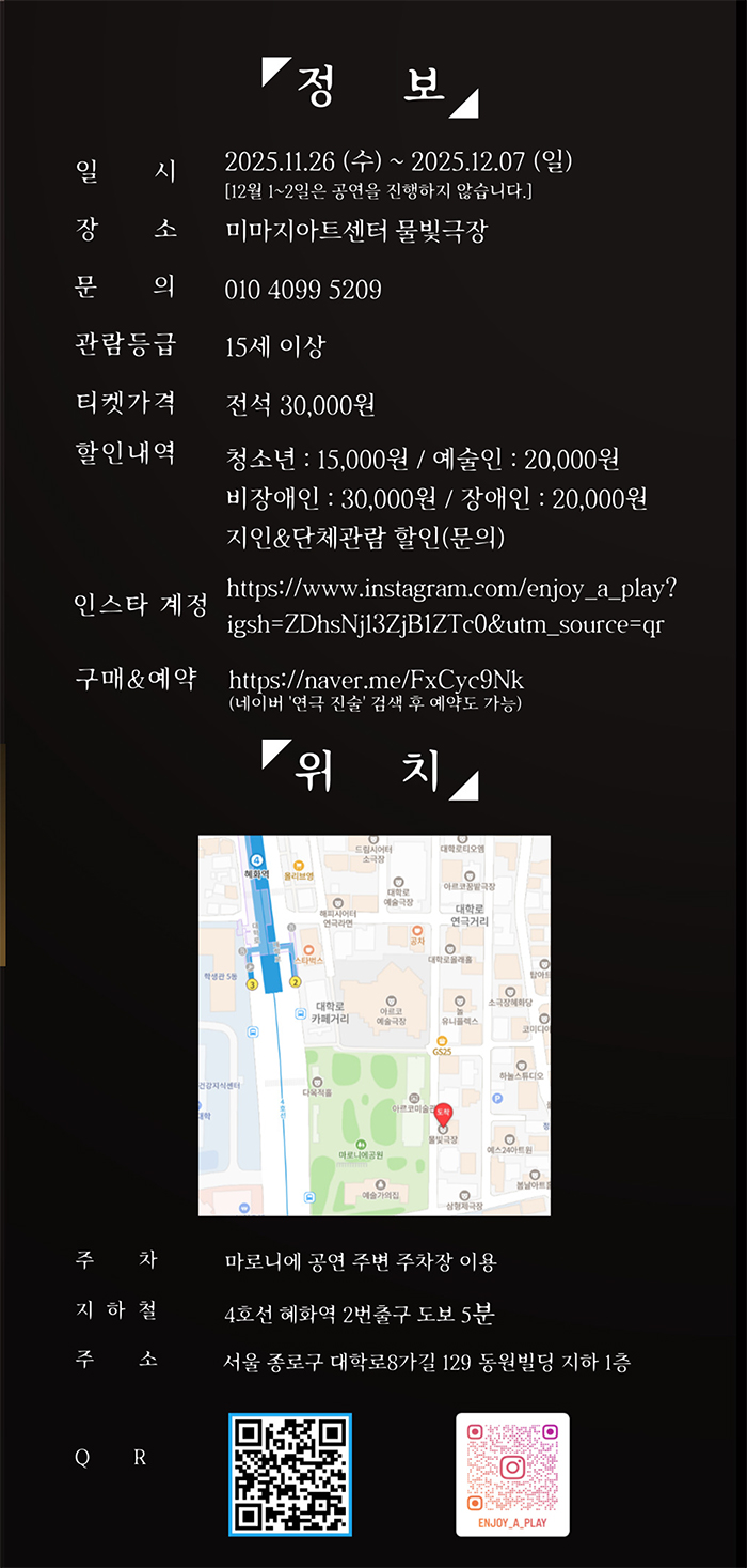| 공연일자 | 2025-11-30(일) ~ 2025-12-07(일) | ||||||||||||||||||||||||||||||||||||||||||||||||||||||
