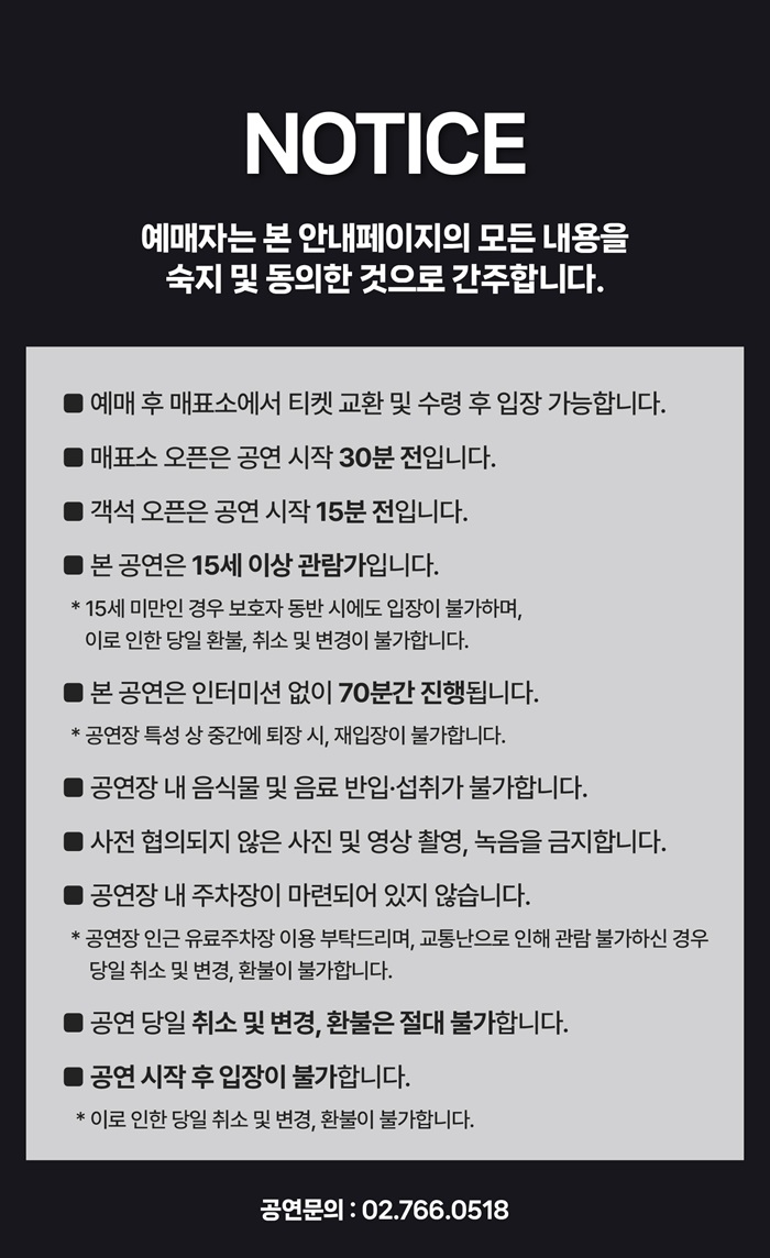| 공연문의 | 02-766-0518 | ||||||||||||||||||||||||||||||||||||||||||||||||||||||