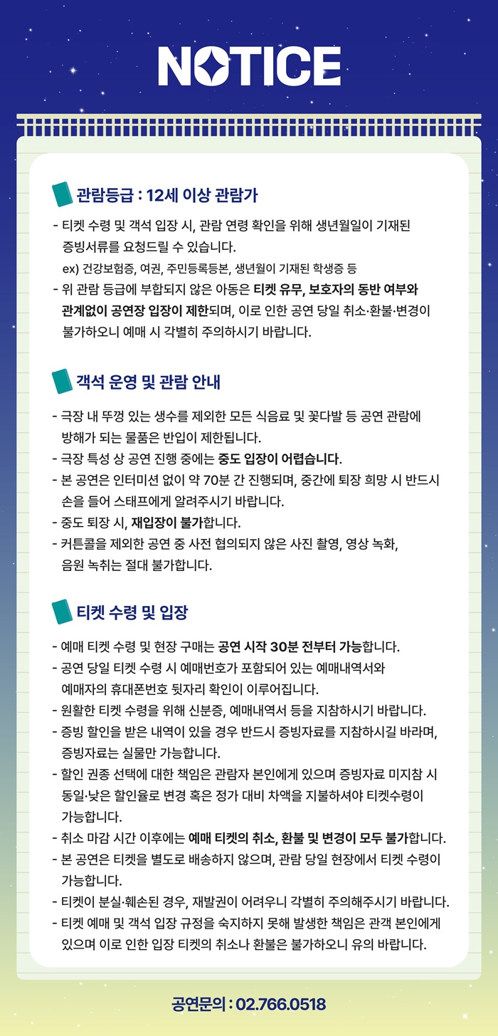 ☞ 좋은공연안내센터 현장할인은 잔여석에 한하여