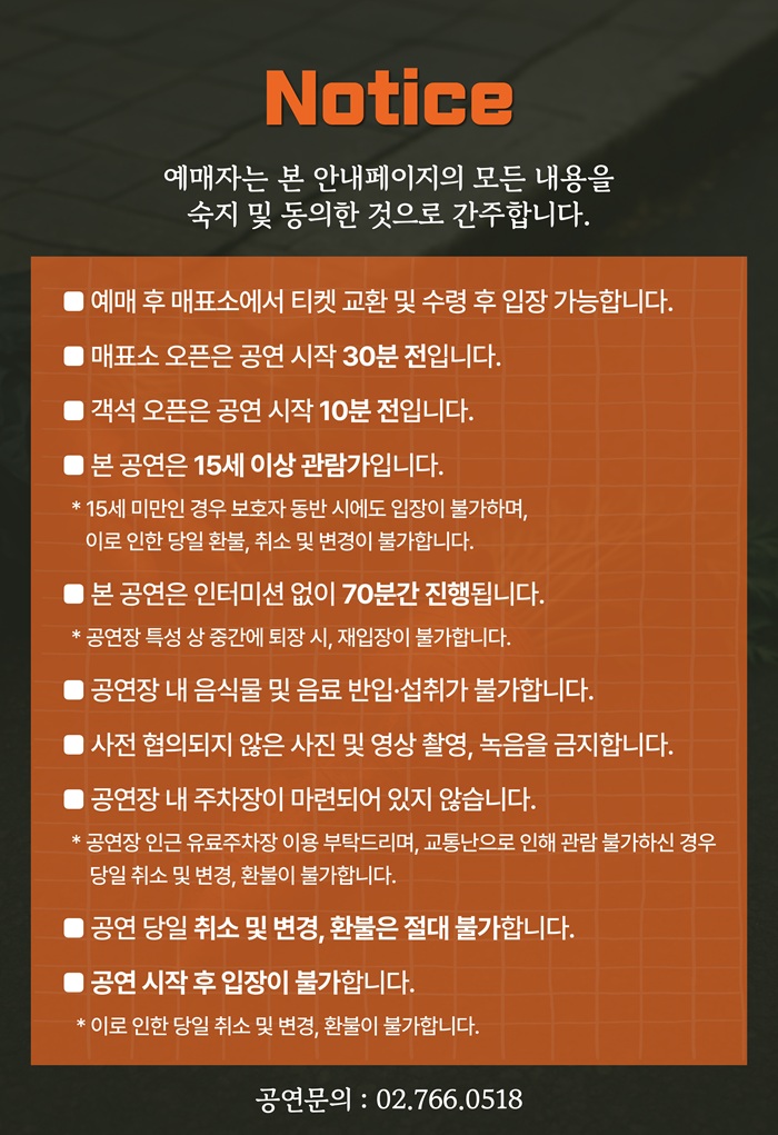 티켓박스(매표소) 오픈 시간은 공연 30분 전입니다.