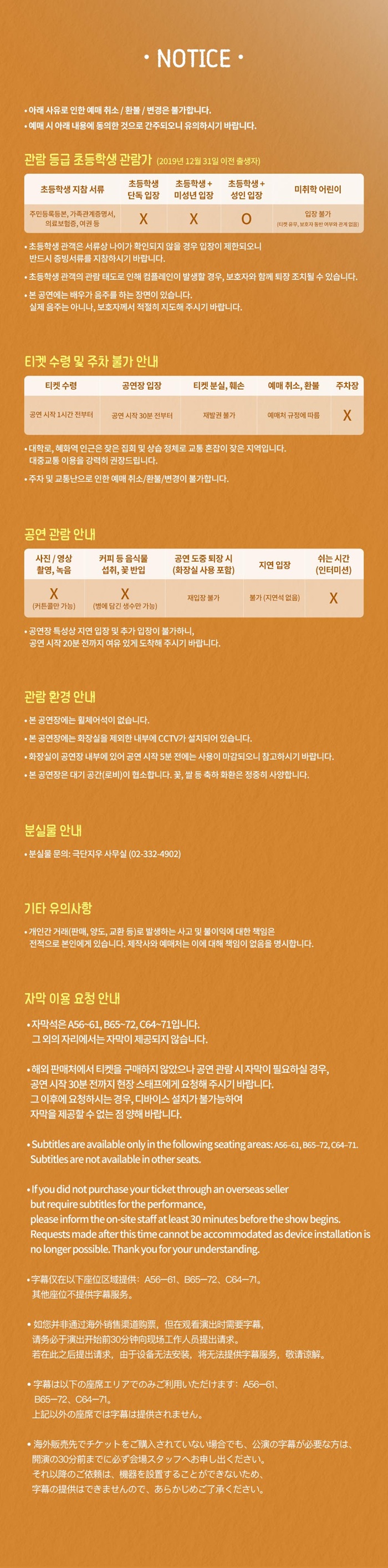 공연시간 수목금 19:30 / 토 14:00 17:00 / 일 14:00 / 월화 공연없음